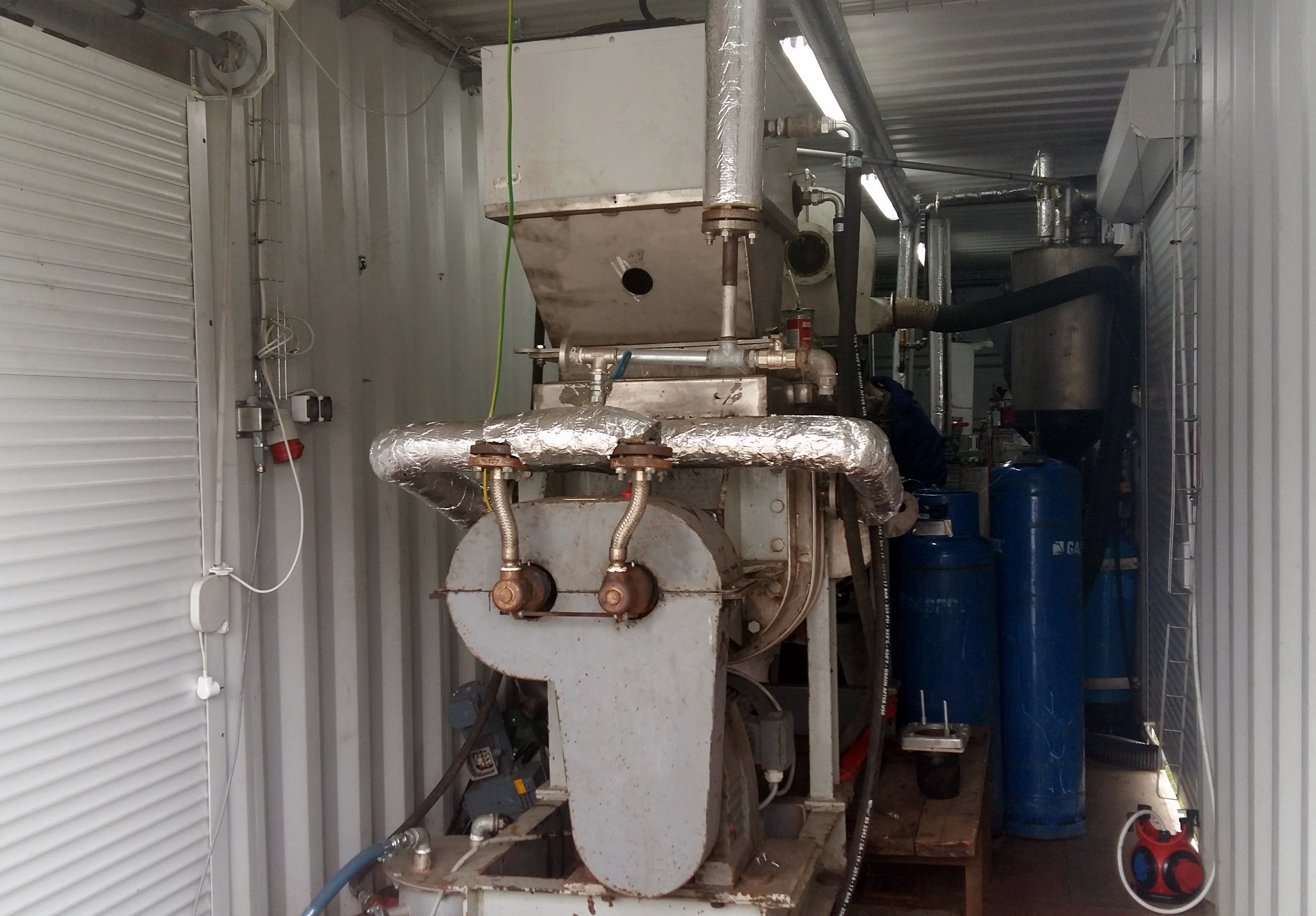 - Dehydrated sewage sludge is fed into a dryer with an average capacity of 100 kg/h.
