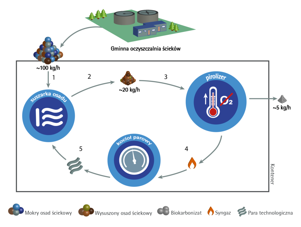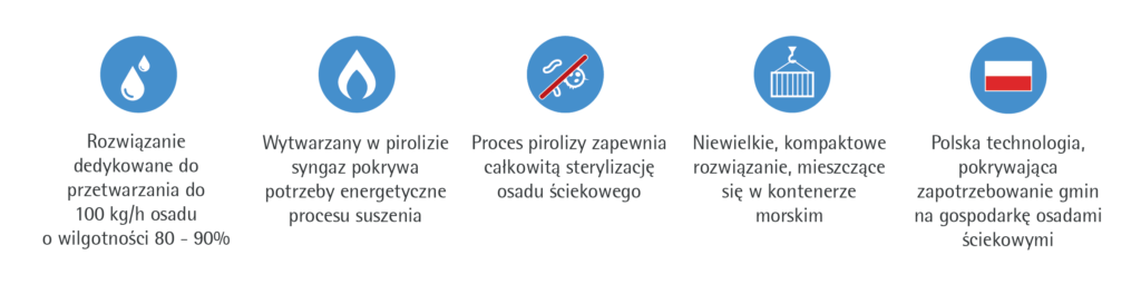 Odwodniony na prasie bądź wirówce osad ściekowy ze względu na swoją wysoką kaloryczność (powyżej 6 MJ/kg), stanowi problem dla większości oczyszczalni ścieków, gdyż wg przepisów prawa od 1 stycznia 2016 roku taki odpad nie może być składowany. Termiczne metody przetwarzania osadów w procesach takich jak piroliza, stanowi bezpieczne dla środowiska rozwiązanie dla zagospodarowania tego odpadu.